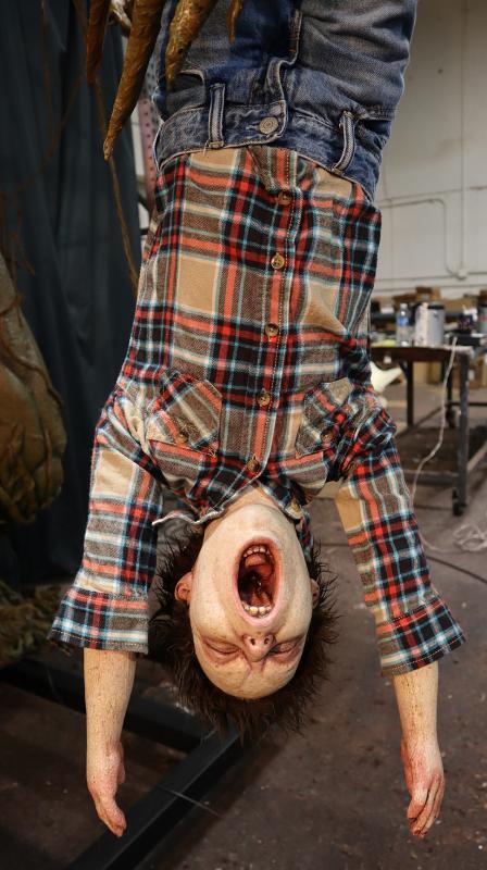 • Realistic carving details are creepy and the swinging head moves in a grotesque way to scare trick-or-treaters and guests