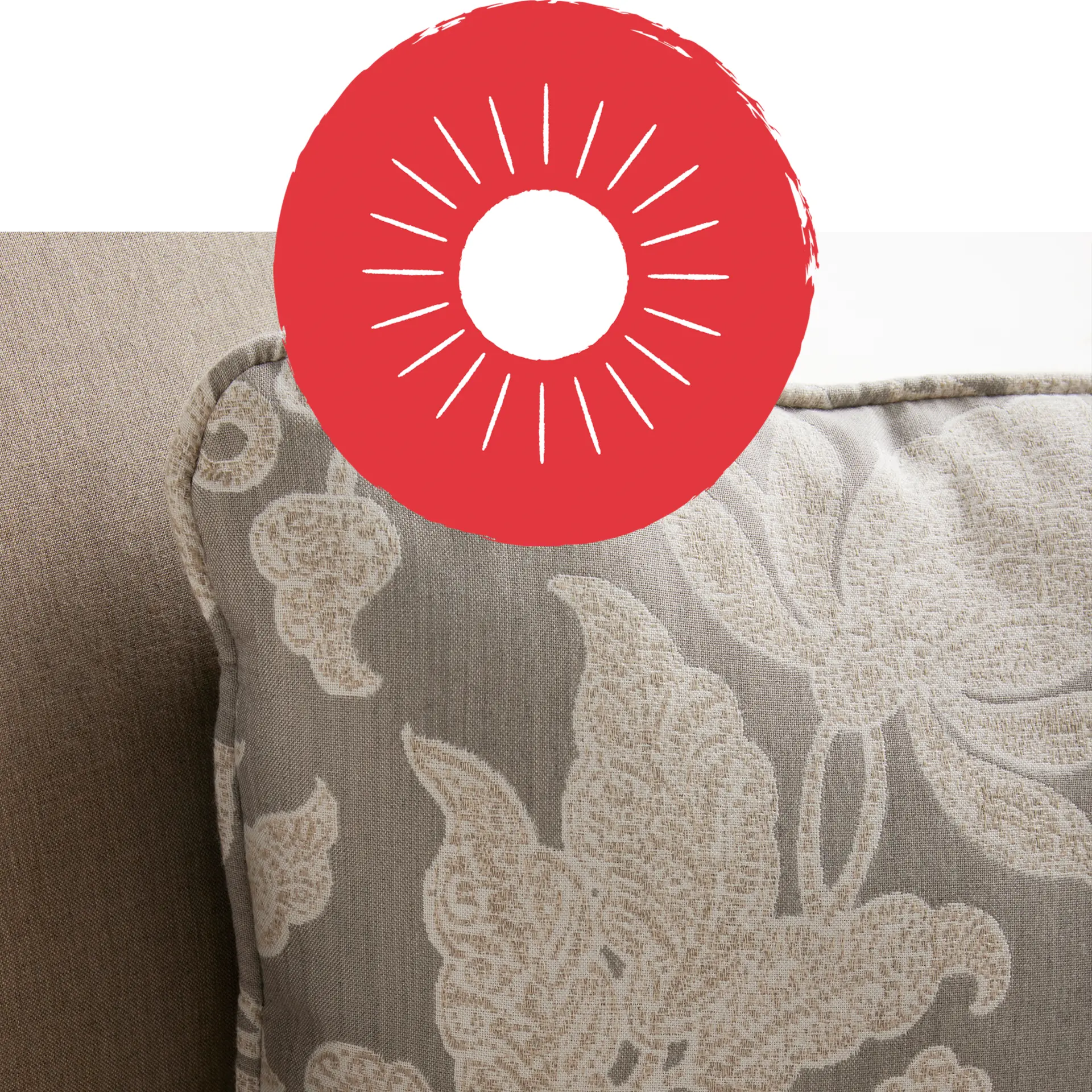 · Cushions and pillows are made with Sunbrella® fabric which is resistant to stains, mildew, chlorine, and fading
