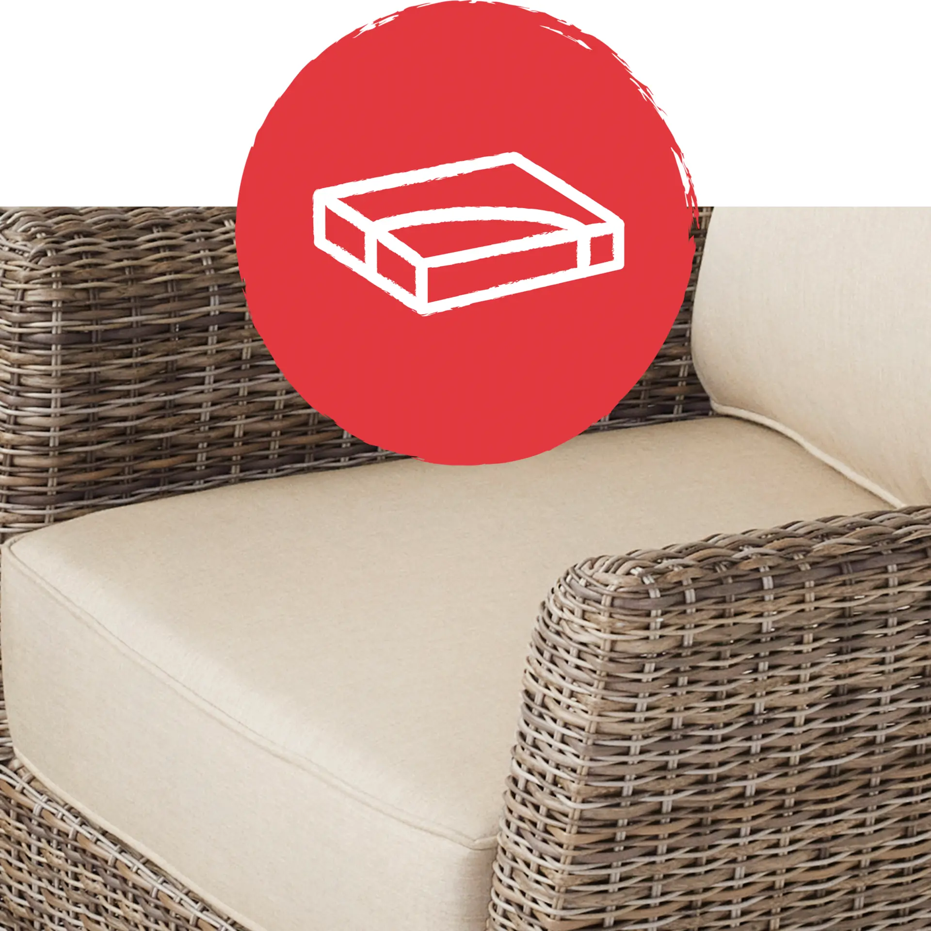 • Cushions and Pillows Are Made with Sunbrella® Fabric That Is Resistant to Stains, Mildew, Chlorine, and Fading