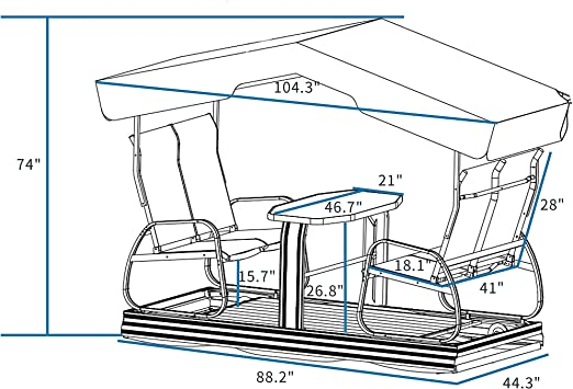 This 4 person porch glider is made of full-cast aluminum frame, Textilene polyester roof , seat and back. Swing benches with glass table is gorgeous in design.