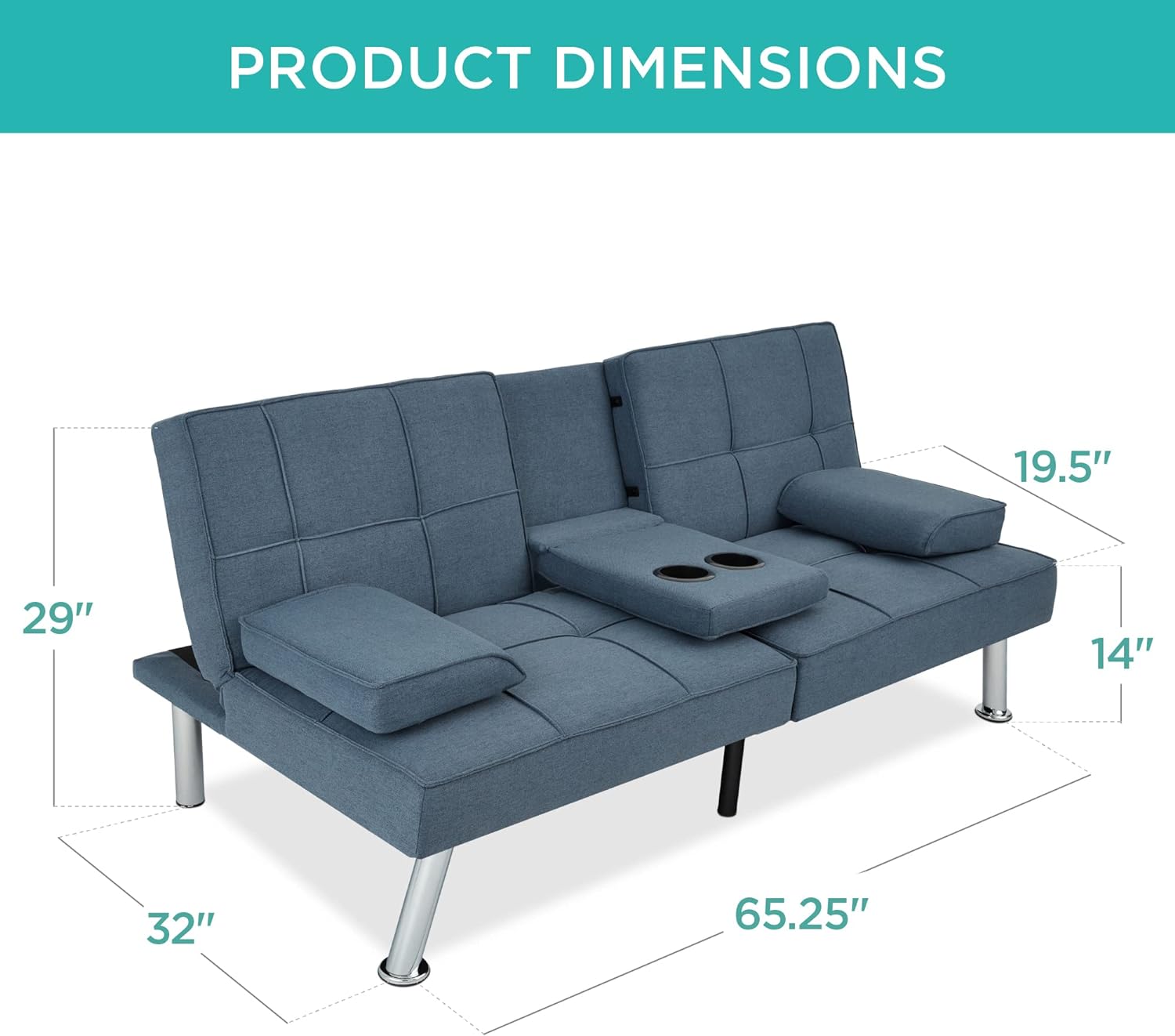 • PERFECT FOR SMALL SPACES: Enjoy the functionality of a full-sized sofa without unnecessary bulk in an apartment or dorm, or make it a comfortable addition to your home's bonus room; OVERALL DIMENSIONS: 65.25"(L) x 32"(W) x 29"(H); Weight Capacity: 500 lbs.