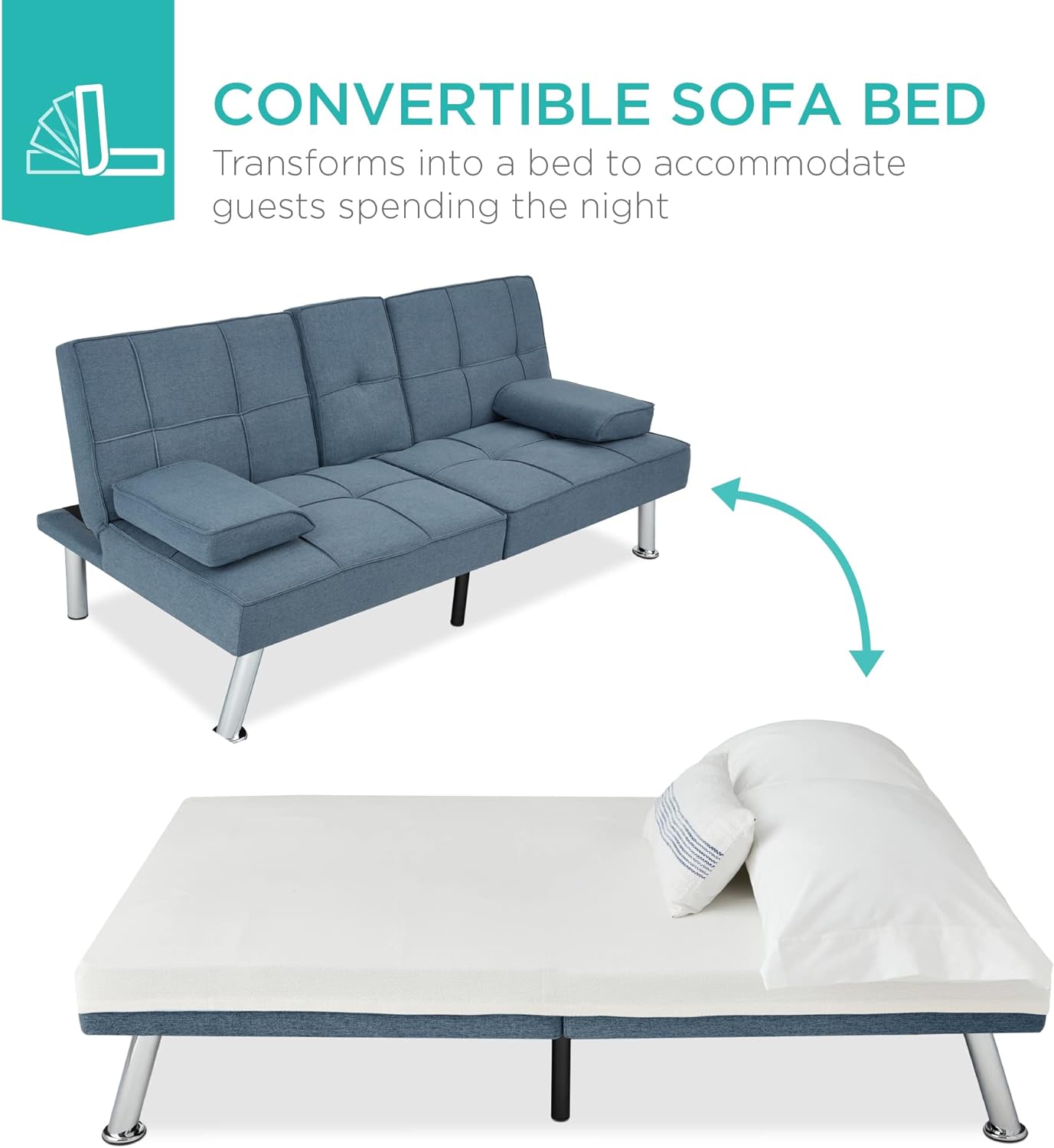 • CONVERTIBLE SOFA BED: Stay prepared for overnight guests by taking advantage of the removable arm pillows and adjustable back to switch from sofa to a comfy bed in just seconds!
