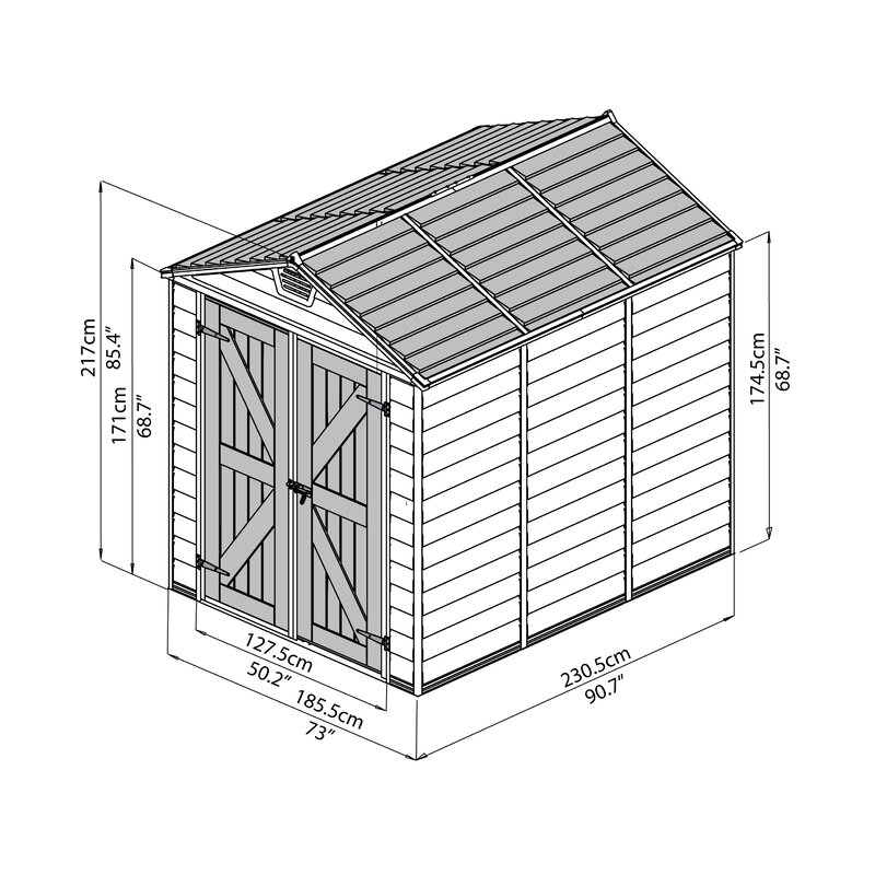 - SkyLight roof and door panels allow 10% light transmission to brighten the inside of your shed with natural sunlight